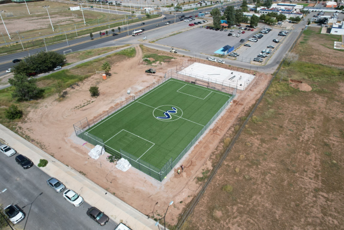 Chihuahua, Chih.- El Gobierno Municipal de Chihuahua, a través de la Dirección de Obras Públicas, reporta un avance del 70% en la construcción del nuevo deportivo ubicado entre las avenidas Homero y...