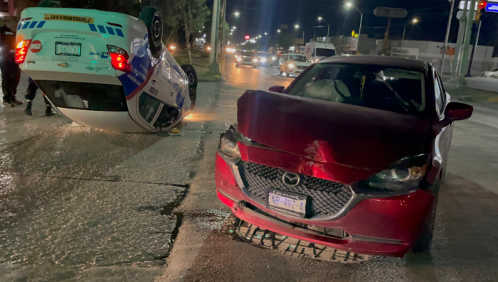 Chihuahua, Chih.- Un aparatoso accidente ocurrió en el cruce de las avenidas Dostoyevski y Sosa Vera, donde se reportó la volcadura de un vehículo.