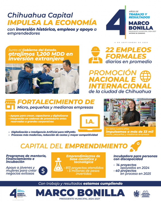 Chihuahua, Chih.- La capital vive una etapa de crecimiento económico sin precedentes, no solo por la llegada de grandes inversiones, sino por el respaldo real a quienes emprenden desde abajo.