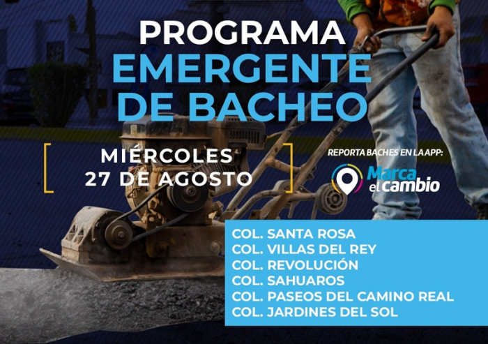 Chihuahua, Chih.- El Gobierno Municipal, a través de la Dirección de Obras Públicas, atenderá baches este 27 de agosto con el programa emergente en las...