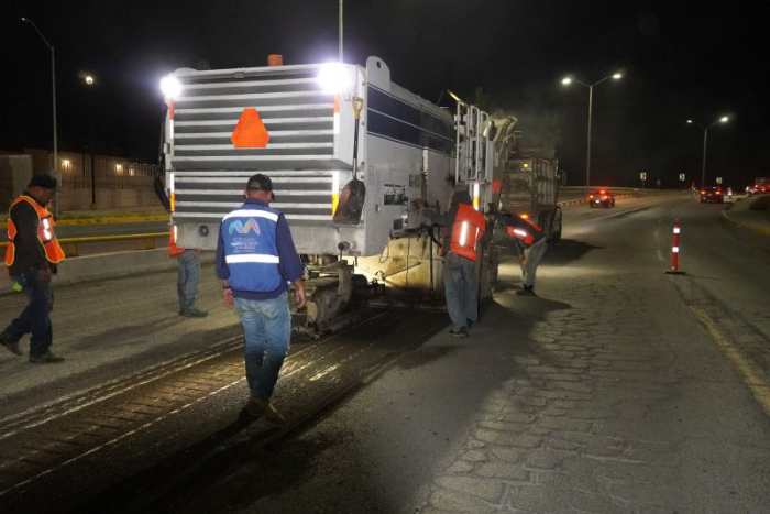 Chihuahua, Chih.- El Gobierno Municipal a través de la Dirección de Obras Públicas se encuentra realizando trabajos de recarpeteo en el tramo del periférico de la...