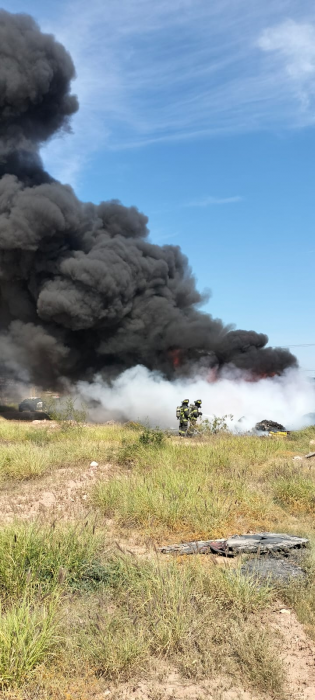 Chihuahua, Chih.– Un incendio de llantas, basura y cartón, registrado en un terreno baldío de aproximadamente 50 por 20 metros, movilizó esta tarde a bomberos y policías municipales en el cruce de las...
