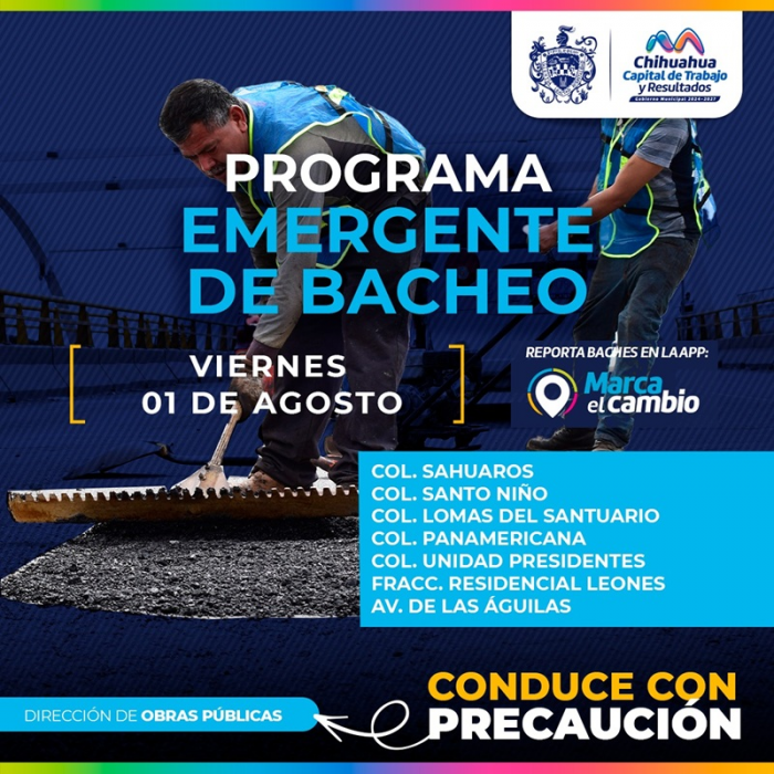 Chihuahua, Chih.- El Gobierno Municipal, a través de la Dirección de Obras Públicas, trabajará con bacheo este 1 de agosto, mediante el...