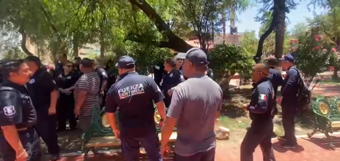 Chihuahua, Chih.- Un grupo de custodios del Sistema Penitenciario del estado tomó la Plaza Hidalgo para exigir el aumento salarial que, aseguran, les prometieron desde mayo y que hasta ahora no ha llegado.