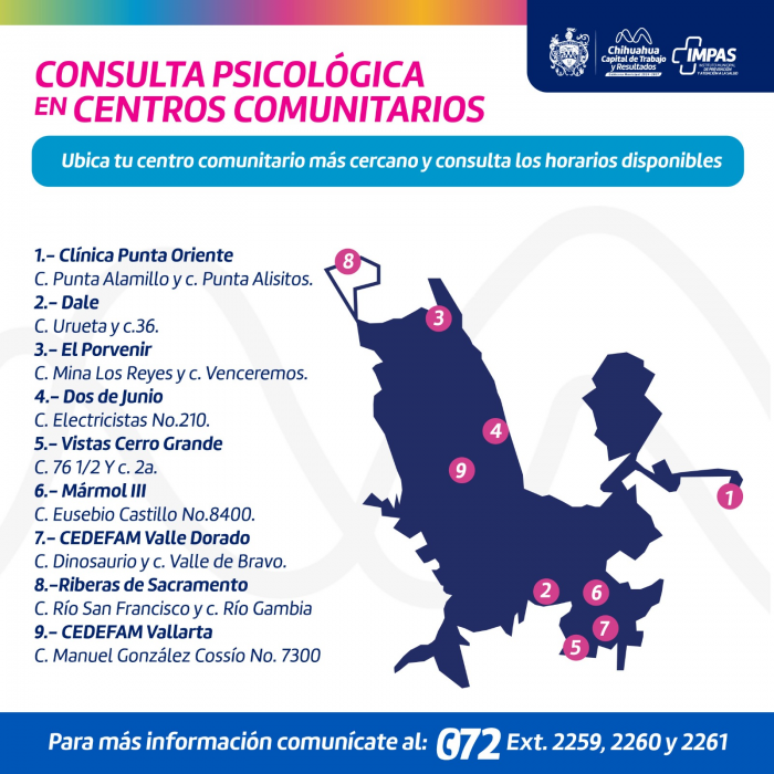 Chihuahua, Chih.- Ante el creciente interés por el cuidado de la salud mental, el Gobierno Municipal de Chihuahua, a través del IMPAS, puso a disposición de la población su “Línea de...