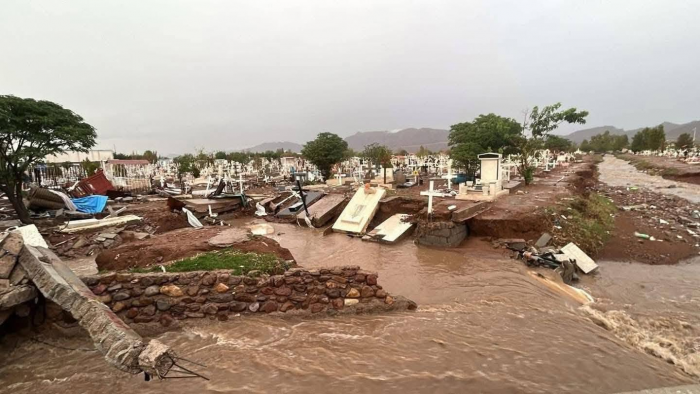 Chihuahua, Chih.- Las lluvias recientes provocaron el colapso de una barda de 50 metros en el Panteón Municipal No. 3, debido a un socavón originado por el bloqueo del arroyo natural que atraviesa la zona. Autoridades municipales...