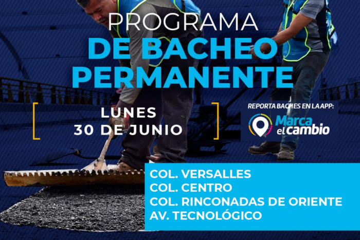 El Gobierno Municipal. a través de la Dirección de Obras Públicas, trabajará con bacheo este 30 de junio en calles de las colonias Versalles, Centro y Rinconadas de Oriente, así como en la avenida...
