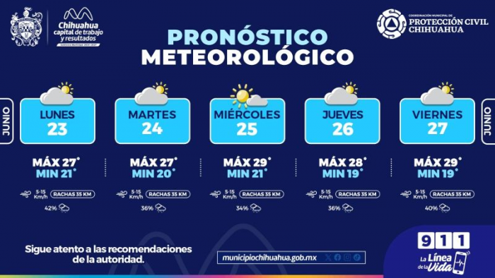 Chihuahua, Chih.- La Coordinación Municipal de Protección Civil, con base en datos del Sistema Meteorológico Nacional...