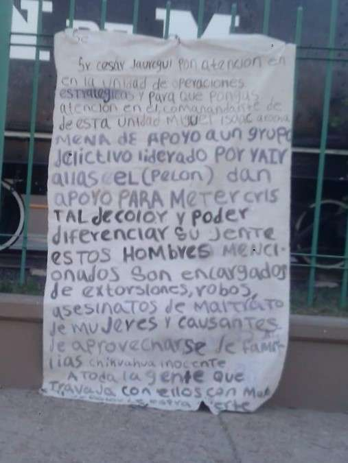 Chihuahua, Chih.- El contenido de la narcomanta colocada en la colonia Pacífico ha sido revelado, y en ella se lanza una amenaza directa contra el fiscal general del Estado, César Jáuregui Moreno, además de acusaciones...