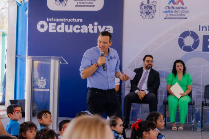 Chihuahua, Chih.- Como parte del Programa de Infraestructura Educativa en el que participan el Gobierno Municipal, Gobierno del Estado y la Fundación del Empresariado Chihuahuense (FECHAC), el alcalde Marco Bonilla y autoridades...