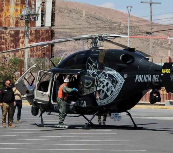 Chihuahua, Chih.- Un helicóptero de la Policía del Estado, perteneciente a la estrategia Fuerza Centinela, aterrizó esta tarde en el estacionamiento del Centro de Convenciones, trasladando a un bebé de apenas 10...
