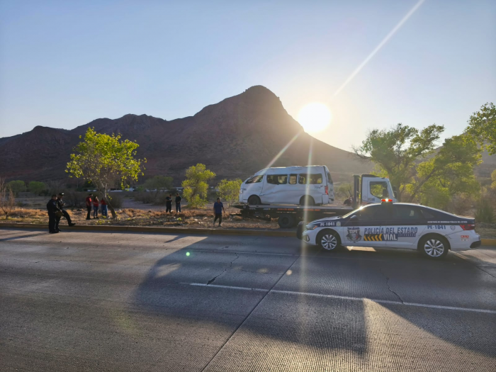 Chihuahua, Chih.- Una camioneta del Grupo Tulpe terminó volcada sobre la vialidad Sacramento, muy cerca de la intersección con la calle Monte Albán, luego de que el conductor perdiera el control y saliera del camino,...