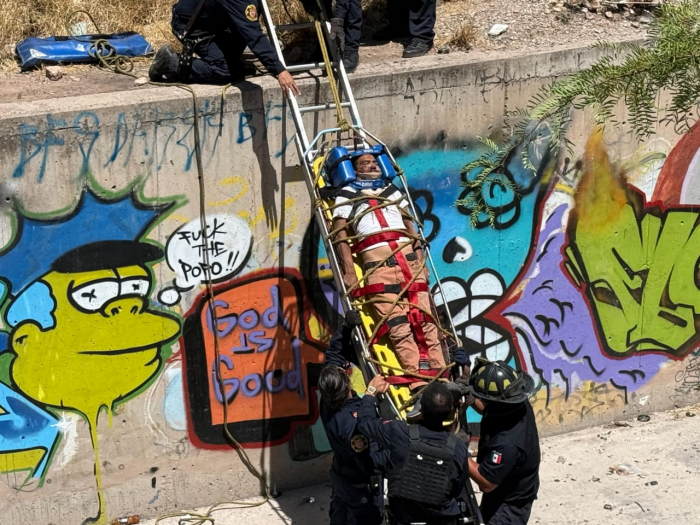 Chihuahua, Chih.- Un hombre de aproximadamente 40 años resultó lesionado tras caer varios metros dentro de un canal ubicado en el cruce de la Vialidad Los Nogales y avenida Tecnológico, al norte de la ciudad.