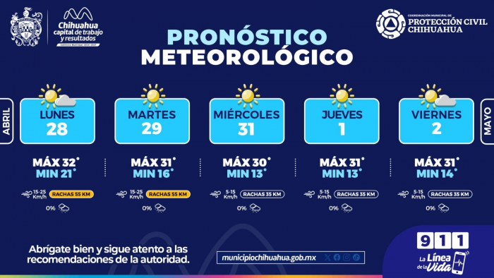 La Coordinación Municipal de Protección Civil informa que, esta semana prevalecerán días calurosos con temperaturas de hasta 32°C por lo que exhortan a cuidarse y tomar suficiente agua a fin de prevenir la...