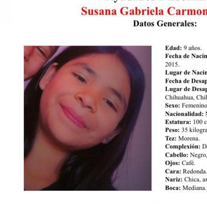 Se busca a Susana Gabriela Carmona Mares, de 9 años, desaparecida el 26 de abril...