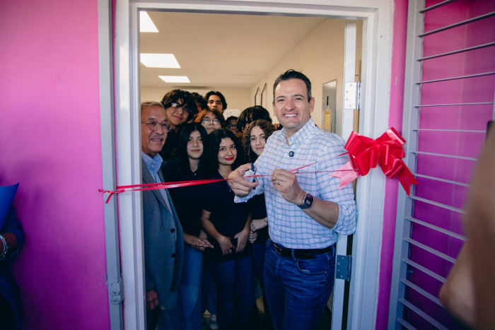 El alcalde Marco Bonilla, acompañado del presidente de la Academia de Matemáticas y Ciencias de Chihuahua Manuel Milán, cortaron el listón inaugural del salón dentro de la Casa de la Juventud, donde las y los...
