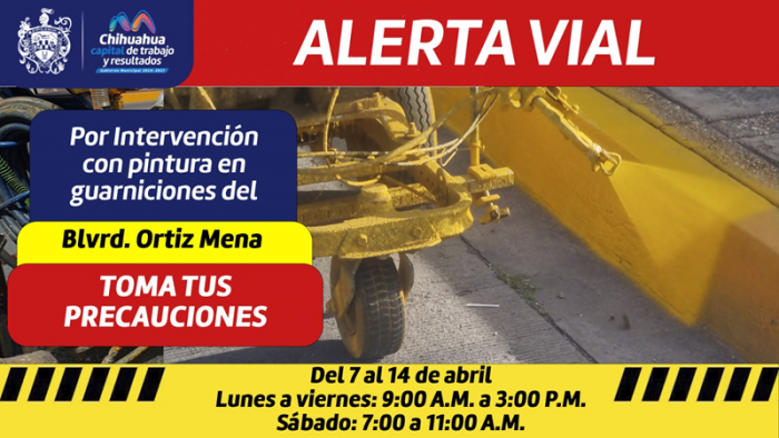 Chihuahua, Chih.- El Gobierno Municipal, a través de la Dirección de Mantenimiento Urbano, informa que se estarán realizando labores de pintura en guarniciones de camellones centrales y laterales del...
