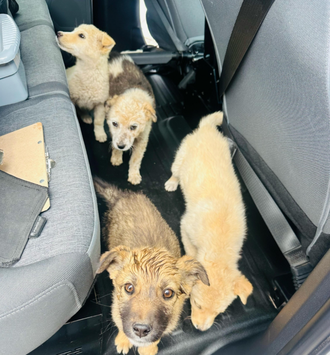 Chihuahua, Chih.- Agentes del grupo Rural rescataron a cuatro cachorros abandonados en una brecha rumbo a Horcasitas.
