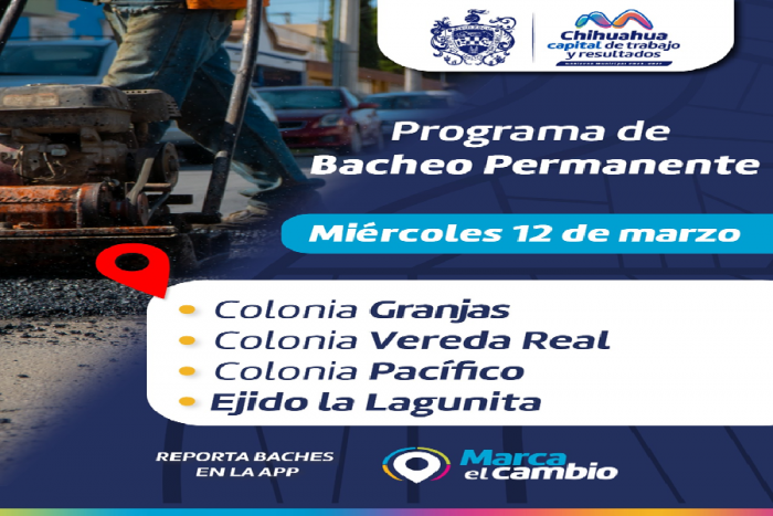 Chihuahua, Chih.- El Gobierno Municipal, a través de la Dirección de Obras Públicas, continúa dando atención a los reportes que realizan los ciudadanos a través del Centro de Respuesta Ciudadana y en la...