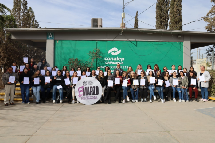 Chihuahua, Chih.- El Gobierno Municipal, a través del Instituto Municipal de las Mujeres (IMM), en colaboración con el Colegio Nacional de Educación Profesional Técnica (CONALEP), graduaron con éxito a 63 alumnas...