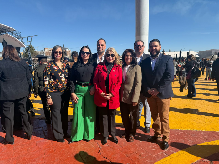 Chihuahua, Chih.- Regidores del Ayuntamiento de Chihuahua asistieron al izamiento de la Bandera Nacional en la Plaza de El Palomar, reforzando el compromiso con las tradiciones cívicas.