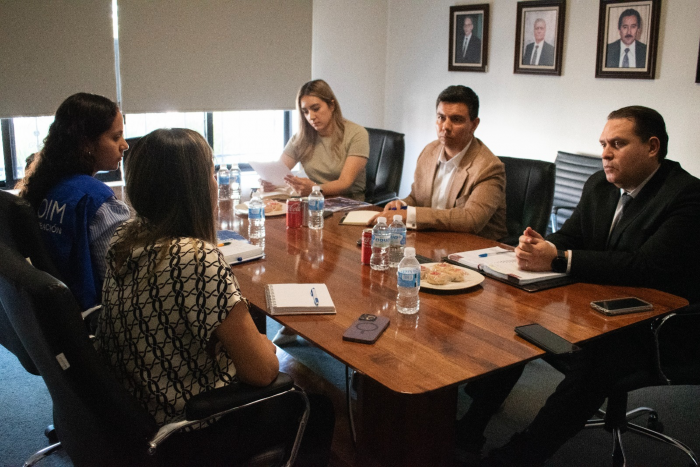 Chihuahua, Chih.- Personal de la Comisión Estatal de los Derechos Humanos de Chihuahua (CEDH) y de la Organización Internacional para las Migraciones (OIM-ONU Migración), sostuvieron una reunión de trabajo con...