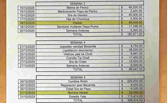 -En la narconómina de El Mencho, se detallan pagos por 630 mil pesos a siete piratas informáticos para vulnerar sistemas financieros y de dependencias de seguridad