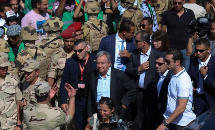 -Decenas de camiones esperan desde hace días en la frontera con Egipto, cerca del paso de Rafah