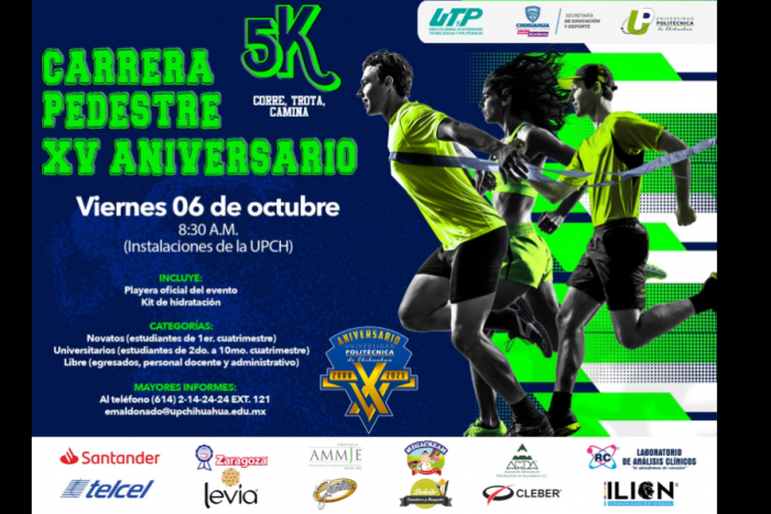 La Universidad Politécnica de Chihuahua invita a la “Carrera Universitaria y de Novatos”, con motivo de su XV aniversario que se llevará a cabo este 06 de octubre del presente, en la cual participarán alumnos,...