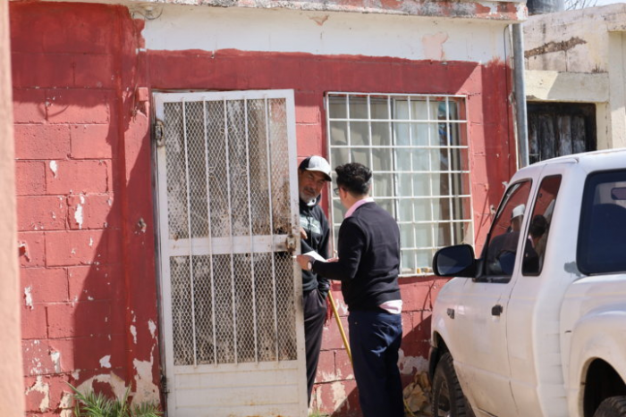 Personal de la Comisión Estatal de Vivienda, Suelo e Infraestructura de Chihuahua (Coesvi), en recorrido por la colonia Sahuaros, en la capital, invitó a las familias a aprovechar los beneficios que ofrece el programa “Juntos...