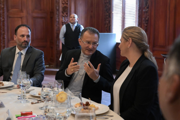 Chihuahua, Chih.- La gobernadora Maru Campos, recibió en Palacio de Gobierno la visita de Monseñor Joseph Spiteri, Nuncio Apostólico en México, así como a autoridades eclesiásticas del estado.