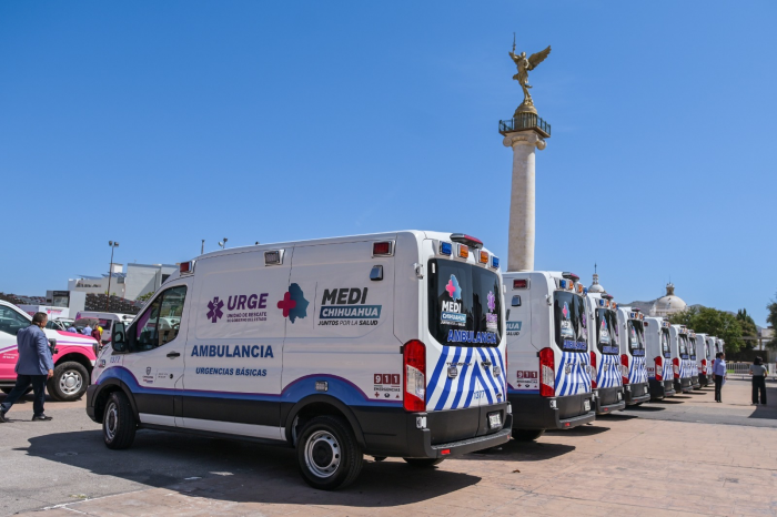 Chihuahua, Chih.- La gobernadora Maru Campos encabezó en la Plaza del Ángel la ceremonia de entrega de 23 nuevas ambulancias, adquiridas con una inversión de 44 millones 396 mil pesos para reforzar el servicio que brinda la...