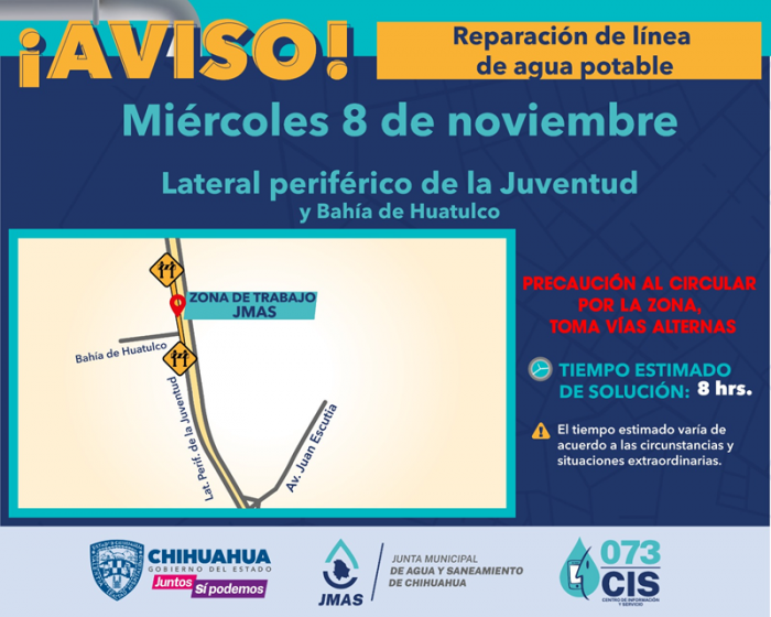 Chihuahua, Chih.- La Junta Municipal de Agua y Saneamiento (JMAS) de Chihuahua informa que este miércoles...