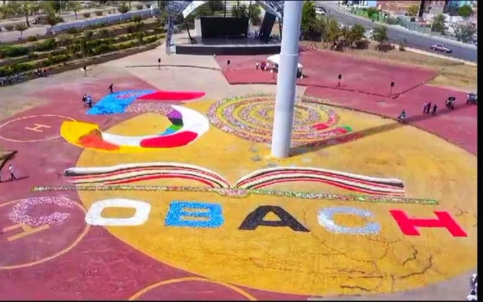 Chihuahua, Chih.- En continuidad a los eventos para celebrar el 50 aniversario del Colegio de Bachilleres del Estado de Chihuahua (COBACH), se llevó a cabo la elaboración de un mega logo con tapas de plástico, el...