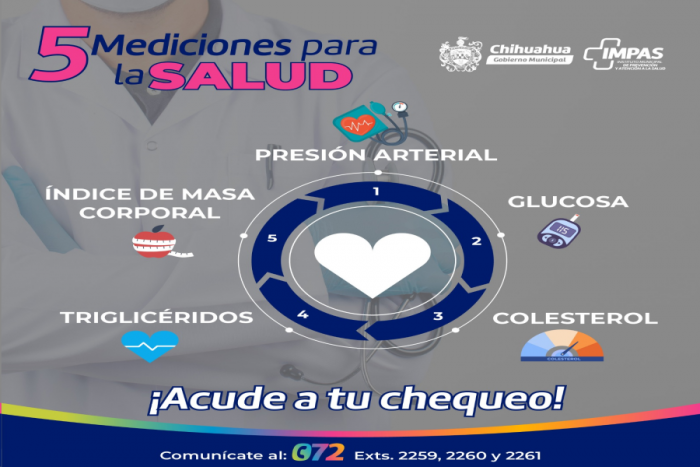 Chihuahua, Chih.- El Gobierno Municipal de Chihuahua, a través del Instituto Municipal de Prevención y Atención a la Salud (IMPAS), comparte algunos factores fundamentales que requieren atención regular para monitorear el estado físico.Entre las medidas a las que se debe estar atento se encuentran: