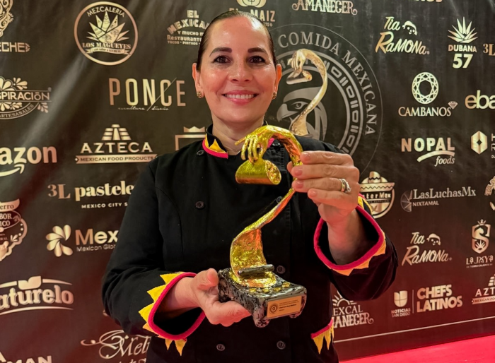 Es por este impulso y por su trayectoria, que la organización Cocineros Mx por el Mundo determinó conferirle el galardón “El Taco de Oro” y nombrarla Vocera de México para el Mundo.