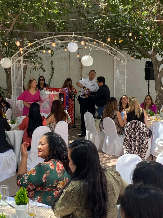 Chihuahua, Chih.- En el marco de la celebración del Día de las Madres, la Secretaría de Seguridad Pública del Estado (SSPE), festejó a las madres de familia que labora en la dependencia en Ciudad Juárez.Dicha celebración se llevó a cabo este 6 de mayo en la Quinta Jardín del Ángel, donde acudieron alrededor de 200 personas, mismas que disfrutaron de un desayuno, y les obsequiaron regalos de bienvenida.