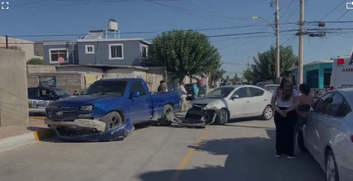 Chihuahua, Chih.- Durante este miércoles se registró un fuerte choque de proporciones considerables sobre las calles Mina de San Carlos y San Vicente en la colonia El Porvenir donde se vieron involucrados un auto Nissan, Sentra y una Chevrolet.Al lugar arribaron paramédicos de Cruz Roja quienes atendieron de manera inmediata a una mujer que había resultado lesionada durante el fuerte encontronazo, para luego trasladarla a un hospital.