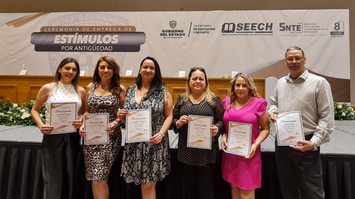 Chihuahua, Chih.- La Secretaría de Educación y Deporte, a través de Servicios Educativos del Estado de Chihuahua (SEECH), entregó estímulos económicos a 960 trabajadores del subsistema federalizado que cumplen desde 10 hasta más de 40 años de servicio, para lo cual se destinaron más de 28 millones de pesos.
