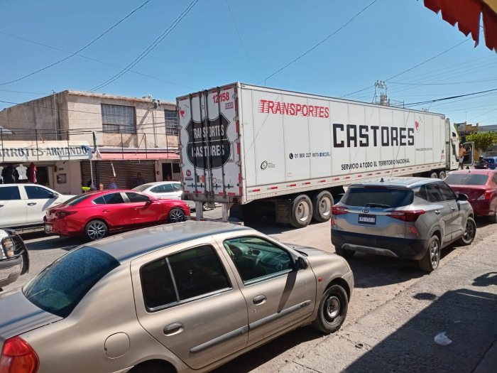 Chihuahua, Chih.- Un tráiler de Transportes Castores causó un apagón en el centro de la ciudad esta mañana, luego de quedar enganchado con cables de luz en la intersección de las calles 25 y Doblado.El vehículo derribó varios postes al pasar, dejando sin electricidad a varios establecimientos comerciales, incluidos restaurantes y barberías.