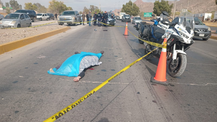 Chihuahua, Chih.- Un hombre fue atropellado en las inmediaciones de la Vialidad Sacramento, como resultado del accidente el peatón falleció en el lugar y su cuerpo quedo tendido sobre la cinta asfáltica.Los hechos se presentaron a la altura del puente de Cementos, donde quedo sin signos vitales casi de manera inmediata, al parecer el hombre trató de cruzar los carriles, pero no midió la velocidad de los vehículos.