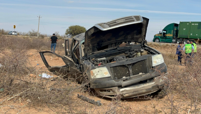 Chihuahua, Chih.- Una familia sufrió un accidente vehicular al transitar por la carretera Chihuahua a Ciudad Juárez, cuando al impactar contra un tráiler salieron proyectados del camino volcando en varias ocasiones.Fue a la altura del km 71 donde una familia, conformada por madre, padre e hijo de 7 años, quedaron con varias lesiones, esto luego de que el conductor de la pick up Ford, King Ranch impactara la parte trasera de un trailer, para luego perder el control.