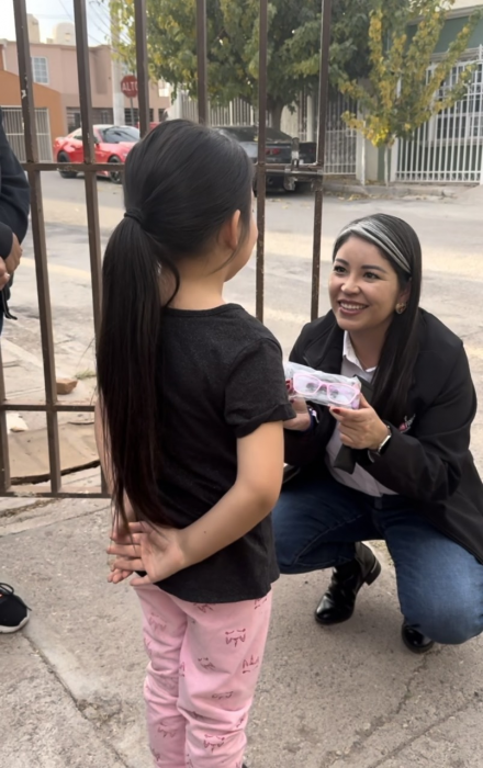 Entrega Nancy "La China" Frías lentes graduados a domicilio