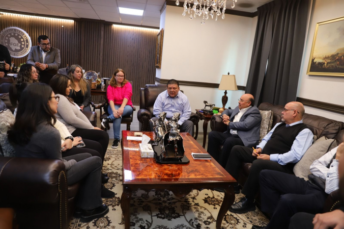 Chihuahua, Chih.- Durante una reunión de trabajo, el Fiscal General del Estado, César Jáuregui Moreno, hizo la presentación de Eloy García Tarín, como nuevo Director de Comunicación Social y Relaciones Públicas de la dependencia.Eloy García Tarín recibe la encomienda de mejorar los canales de comunicación para la difusión de las acciones y resultados que diariamente realiza la Fiscalía a través de sus diferentes fiscalías de distrito y especializadas, las direcciones y departamentos y la Agencia Estatal de Investigación.