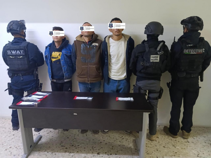CHIHUAHUA, Chih., 13 de enero de 2025.- En un operativo realizado el pasado 12 de enero, el personal del Grupo Especial de Detectives de la Secretaría de Seguridad Pública del Estado (SSPE), en coordinación con la Fuerza Especial SWAT y la Guardia Nacional, detuvieron en la ciudad de Chihuahua a tres hombres por la posesión de supuestas sustancias ilícitas.Durante las labores de investigación y vigilancia sobre las calles Río Motagua y Río Duero, en la colonia Riberas de Sacramento, los agentes se percataron de un grupo fumando con una pipa, de la cual emanaba el olor característico de la marihuana, al notar la situación, los agentes descendieron de sus unidades para realizar el abordaje correspondiente.