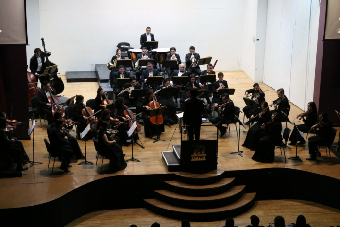CHIHUAHUA, Chih.- La Orquesta Sinfónica de la UACH deleitó al público con su segundo concierto de la temporada, titulado "Celebrando el Amor y la Amistad, con jóvenes solistas" bajo la dirección artística del maestro David Pérez Olmedo.Cabe resaltar que en esta ocasión se contó con la asistencia de alumnos de segundo semestre de la materia "Teoría del Estado" de la Facultad de Derecho, impartida por el maestro Jorge Simental Ortega, quienes fueron recibidos por el maestro Luis Rivera Campos, Rector de la Universidad Autónoma de Chihuahua, acompañado de la Dra. Ruth del Carmen Grajeda, Directora de Extensión y Difusión.
