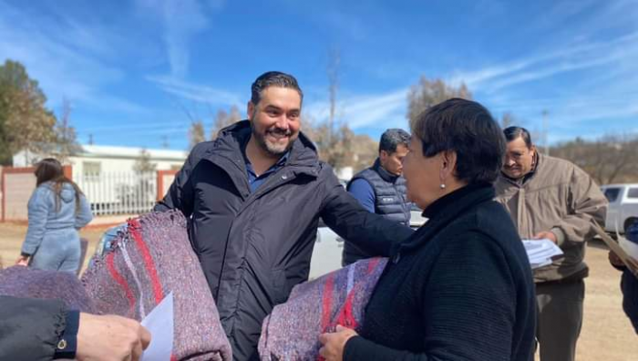 Hidalgo del Parral, Chih.- El diputado Edgar Piñón se dio cita en las localidades de Posadeño y Minas Nuevas del municipio de Hidalgo del Parral, para apoyar a familias por el recién llegado frente frío a la entidad, en aras de que puedan contrarrestar los estragos de las bajas temperaturas.
