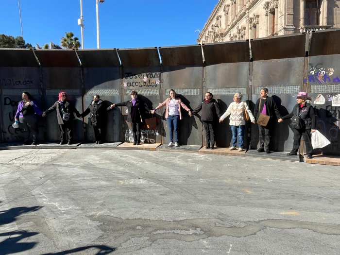 CHIHUAHUA, Chih.- El día de hoy viernes por la mañana 9 féminas pertenecientes al Movimiento Estatal de Mujeres en Chihuahua, se postraron a un costado de las vallas de protección colocadas en Palacio de Gobierno, para dar a conocer sus exigencias.Esto en el marco del Día Internacional de la Mujer, asimismo realizaron la lectura de un posicionamiento en el que exigió a las autoridades acciones concretas para atender la violencia de género en la entidad.