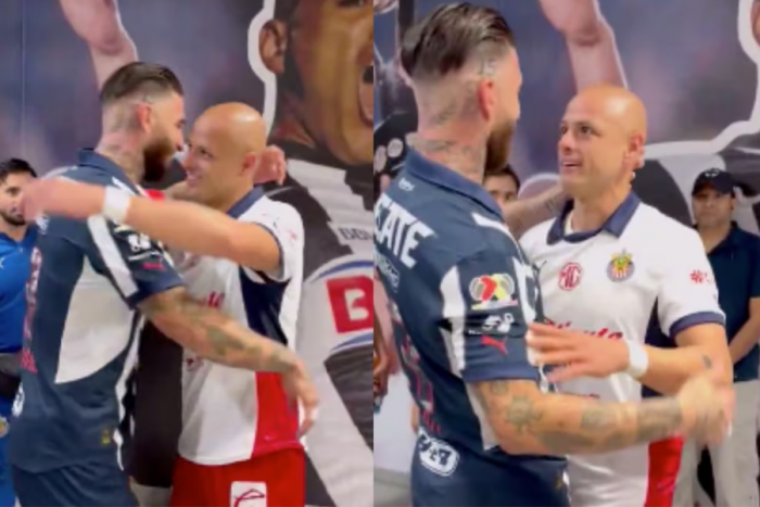 Las imágenes, compartidas por Chivas, permiten ver el instante antes de saltar al campo, en el que ambos intercambian palabras y terminan dándose un abrazo.