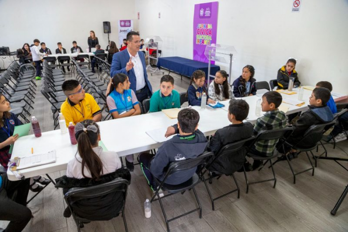 Chihuahua, Chih.- Con motivo de la celebración del Día de la niñez, el Gobierno Municipal, a través de la Dirección de Desarrollo Humano y Educación, llevó a cabo la Jornada Cívica Electoral Infantil 2025 en Casa de la Juventud.